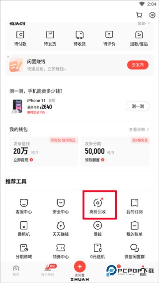 2、在页面底部推荐工具区域选择"更多"选项,进入后点击"高价回收"。