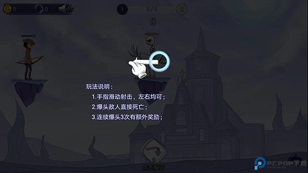 2、根据玩法说明,手指左右滑动屏幕拉弓射击,上下滑动调整瞄准方向,松开屏幕即可发射,爆头可直接击杀敌人。