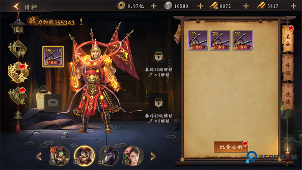 (3)鬼神们只在挑战副本的时候出来帮忙打架。系统会很智能地挑选你手底下战斗力排在前三名的三位鬼神自动出场。