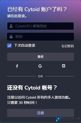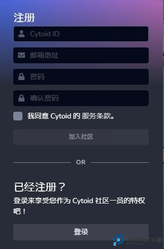 1、在赛托德Cytoid游戏内或官网点击【注册】即可进入账号创建页面;