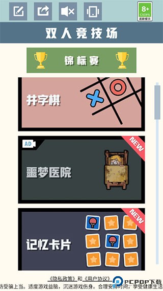 1、在本站下载安装好双人竞技场联机版最新版本后,点击进入,上下滑动选择自己喜欢的游戏进行挑战。