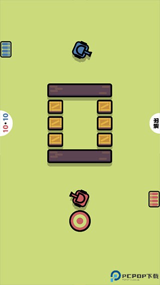 点击按钮开火,长按按钮前进,摧毁敌方坦克获胜!