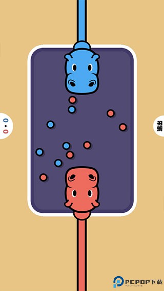 点击操控河马吃掉小球,吃到自己颜色小球时获得2分,吃到对手颜色小球时扣除1分,先得到80分获胜!