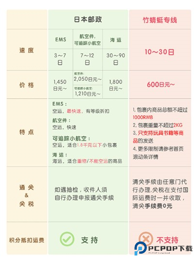 各个物流的时效,特点,通关和关税等信息请参考下表。