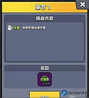 2、挑战:一个章节可获的400绿宝石,没通过一关主线关卡,开启一个章节。