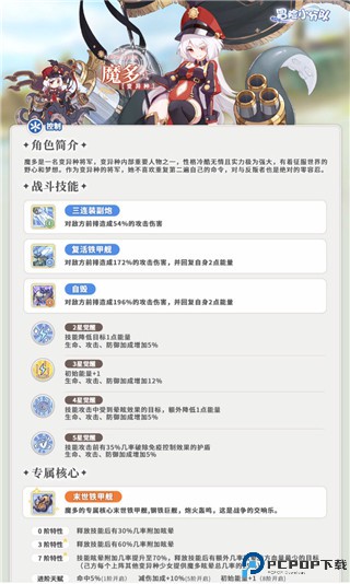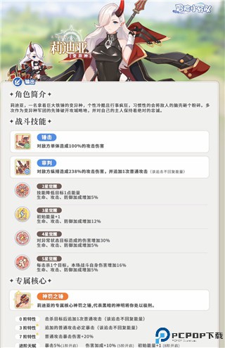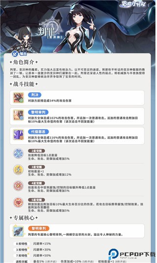 第二位:判罪,变异种的主力输出,2星降能,4星和5星主要是对被受到控制和腐蚀的敌方有额外的伤害加成和降能。建议放第二占位,先手魔多眩晕,可以让判罪的输出和降能最大