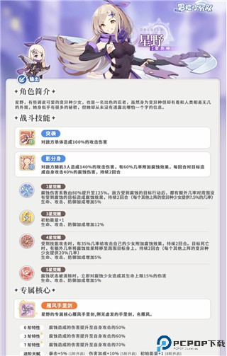 第四位:星野,变异的第二毒,相比蒂娜,面板系数没那么高,但是2星和4星可对周围没有腐蚀的目标也打上状态,让腐蚀的更全面,前期腐蚀的伤害效果不明显,但到了后期,大家的人物属性都比较高,单纯的伤害会比较刮痧,比如像无敌盾,反伤,还特别肉,奶量高,这时双毒的优势就出来了