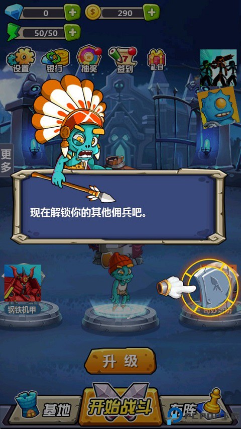 2、通过闯关挑战方式去解锁更多的地图、模式、更多属性不同的僵尸战士