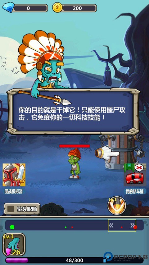 在这里玩家的主要目标就是干掉对方的基地,只能使用僵尸攻击,它免疫您的一切科技技能!