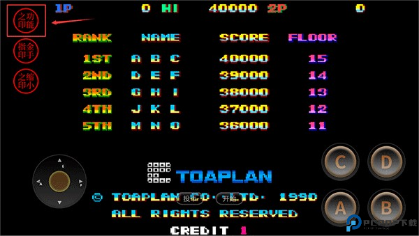 3、设置完成后返回开始界面,先点击投币,待 CREDIT 显示数字 1 时,点击开始进入游戏。