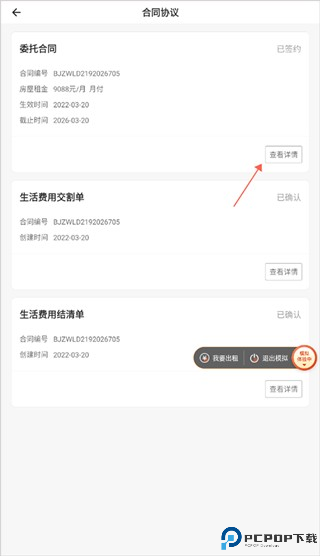 2、进入到界面后点击合同右下方的查看详情即可查看