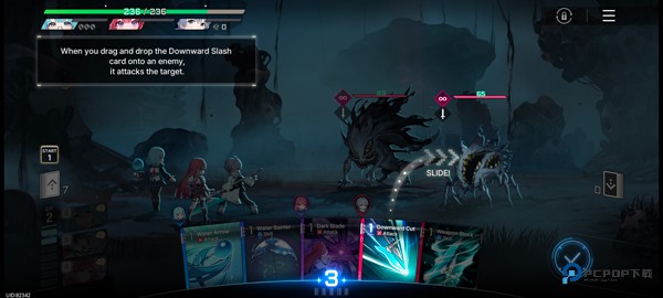 6、游戏为卡牌回合制战斗。抽取卡牌代表技能,选择攻击目标。