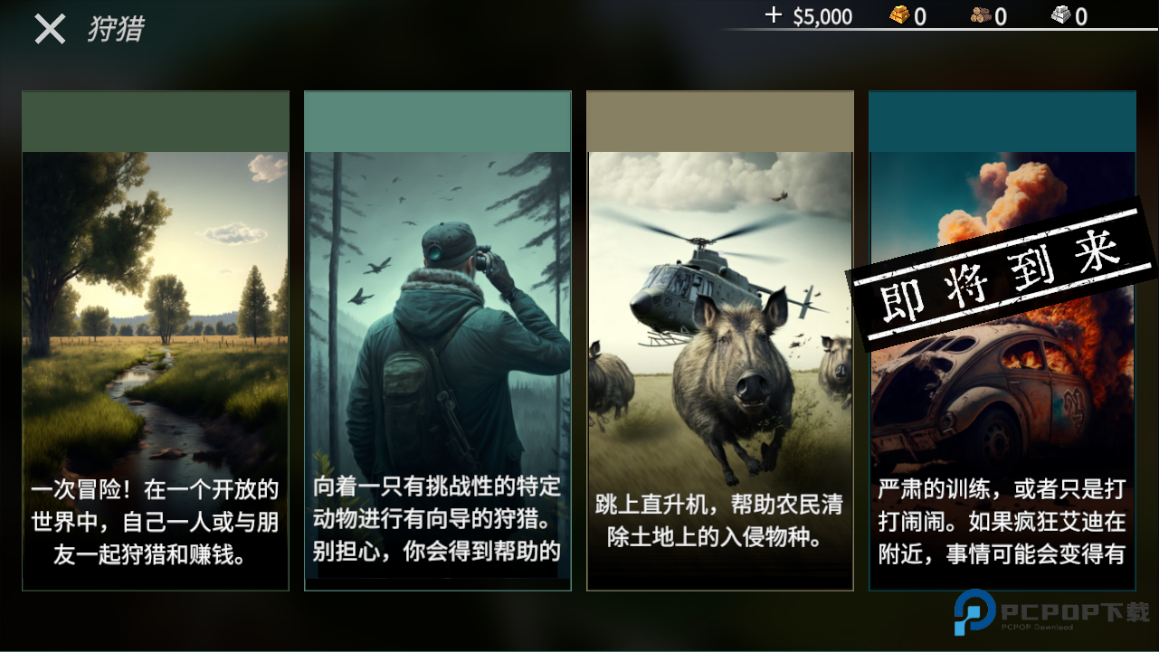 1、启动《猎鹿人神枪手》中文版游戏,进入主界面后选择右下角狩猎功能入口