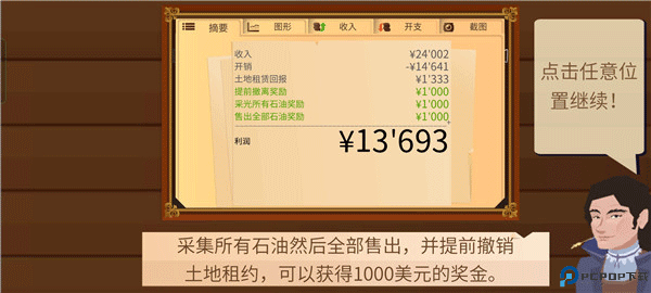 石油大亨中文版是由深圳雷霆信息技术有限公司发行的一款模拟经营类型的游戏。在石油大亨中文版中,玩家将从一个小小的石油公司的经理,通过不断的开采石油、低买高卖、升级公司设备等方式逐渐成为石油大亨。游戏有着十分有趣的开采过程,有时候可能挖到大油田但有时候也可能是空的,十分刺激。同时游戏的经济系统也是十分出彩,玩家可以囤积石油等到油价上涨的时候再进行售卖。是一款十分真实好玩的模拟经营游戏。