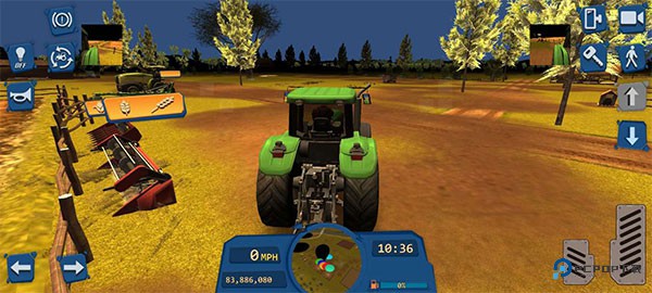 3、支持多视角切换操作,特别提供驾驶舱第一人称视角。玩家可沉浸式操控各类农业机械,例如根据作物特性手动调节收割机刀片高度参数。