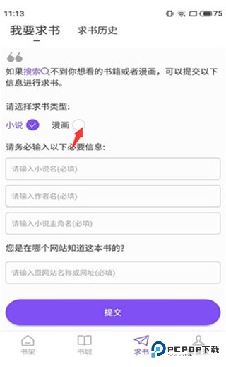 2、进入"求书"频道功能区,输入目标漫画名称执行搜索指令,系统会立即显示相关结果。