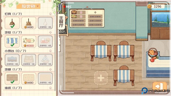 4、点击收集然后选择家具店可以消耗金币购买各种类型的餐厅家具。