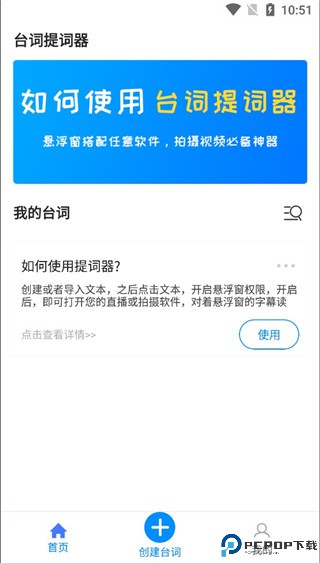 1、首先我们打开可以看到正下方可以点击创建台词;