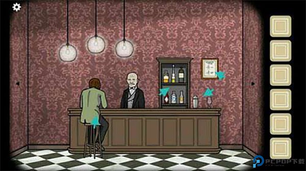 9、接着根据提示再调一杯酒「1×VODKA、1×TABASCO、2×BLOOD(血)」,递给男人后开自杀,点击洞,先走左边,沿途收集到3个「方块」,从左边出来后再次进去,这次走右边收集到1个「方块」,在右边有一个密码箱,暂时不用管。