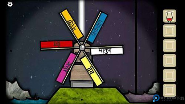 14、根据墙上六道轮回的画,以及灯光打在照片上显露的符号重新排列风车的扇叶。经过卫生间时,发现鲍勃坐在马桶上,点击他,鲍勃被黑色物质包围。正确排列后,从磨坊射出白色的光束。逃脱成功。