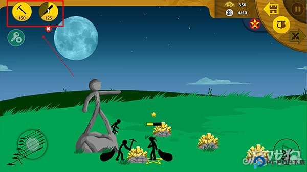 3.点击右上方,然后创造专门挖矿和进攻的士兵。