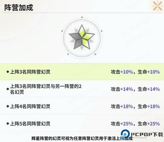 你的队伍最多上阵 5名幻灵角色 ,上阵相同属性的角色会激活额外增益效果: