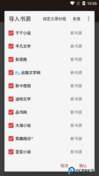 4、即可看到以下所有书源,你可以自行挑选进行导入;