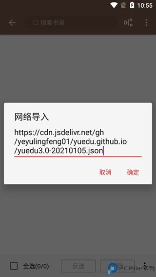3、将上面的书源粘贴复制到软件界面中,点击确定;