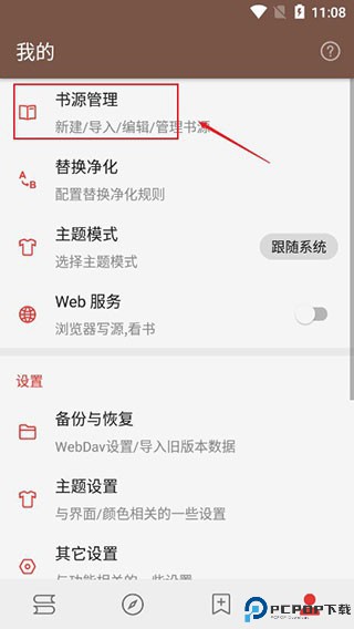 1、打开软件,点击我的,进入书源管理界面;