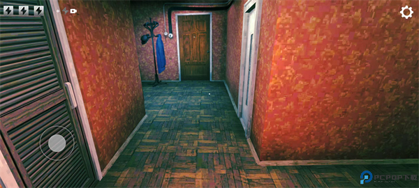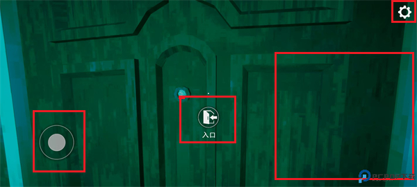 1、开局,左边是移动摇杆,右边滑动屏幕转动视角,右上角是设置按钮,随后点击中间“入口”,打开大门。
