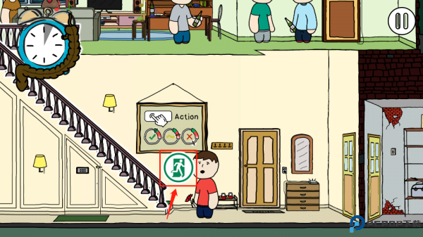 寻找老鼠,手要快,在触碰到老鼠的一瞬间拿走身上的钥匙(老鼠只有一只,会到处窜;可能在厨房、二楼沙发处、保洁大妈脚下、一楼前台);才能坐电梯来到地下,在医生回来前窝在脑子里。(最右边有一道铁门,需要集齐三个关卡的三把钥匙打开)。