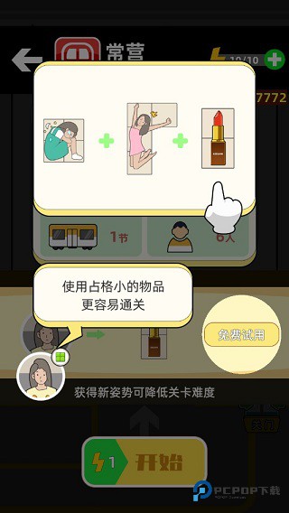 1、采用俄罗斯方块式拼图机制,将不同姿势的乘客拖拽至地铁车厢内,通过调整位置与形态完成车厢空间填充。