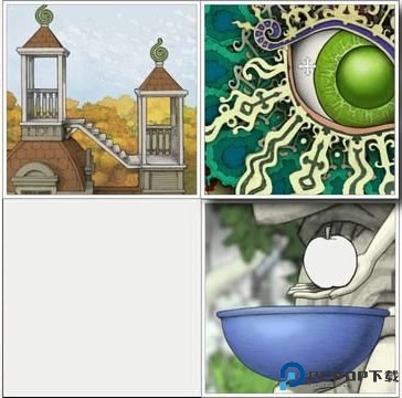 这一关的通关方法就是把左上角的乌鸦给踢下来,然后把右上角的苹果弄到碗里。接风连接起来,就触发了。之后引导孩子往前走,调整一下整个门洞的位置,让他进入到花园里面。