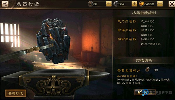 4、获得名器碎片后,可在铁匠铺消耗指定数量直接锻造完整名器。