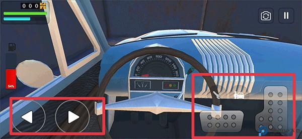 5、上车后就可以驾驶车辆行驶在道路上啦,左边按键控制方向,右边分别为倒车和前进。