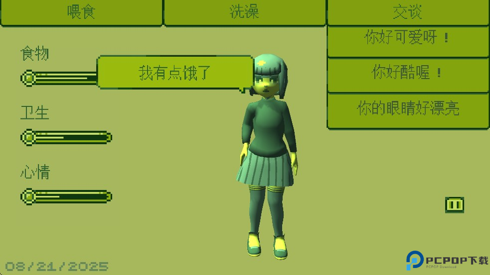 电子女孩中文版采用绿色调像素画风,构建出独特的电子质感界面。玩家需通过喂食、洗澡、对话等方式维持角色状态并提升亲密度。电子女孩中文版下载里的每个选择都会影响角色的情绪与成长路径,最终导向不同结局。电子女孩特定服装与行为可触发隐藏事件,影响后续剧情发展。