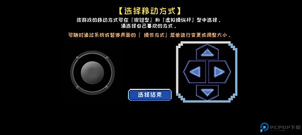 3、加载到游戏之后,我们需要选择游戏的移动方式,有两种方式可以选择按钮型和虚拟操纵杆,这边建议选择虚拟操纵杆,选择好之后进入游戏画面;