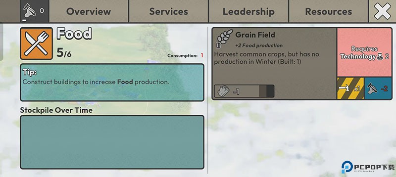 2、体力(stamina)用于建造、探索等。定居点会随着时间的推移产生体力。