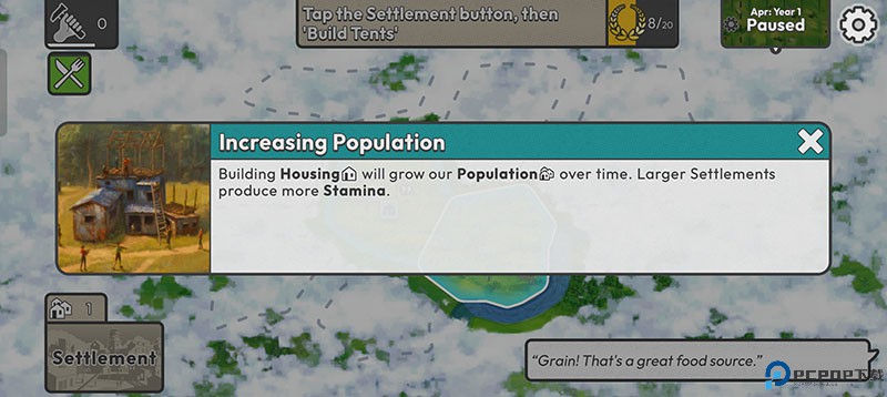 7、随着时间的推移,建造住房将增加我们的人口。更大的定居点产生更多的体力。