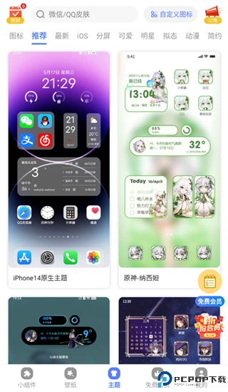 1、心动主题壁纸拥有很多小组件和壁纸,有些需要会员但是也有很多免费的。
