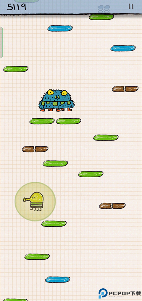 doodlejump2里也会出现一些体积大小不一的怪兽,玩家如果控制小怪兽不慎碰到这些怪兽也会直接跌落死亡,而对付这小怪兽最好的办法就是捡取保护膜道具(类似于无敌金钟罩),而这些道具会根据大怪兽的出现而出现,玩家只要及时的捡取,甚至还可以直接将这些大怪兽当做跳板进行跳跃。不过如果玩家错失了捡取保护膜的机会,还可以通过控制技巧绕过大怪兽继续进行跳跃。