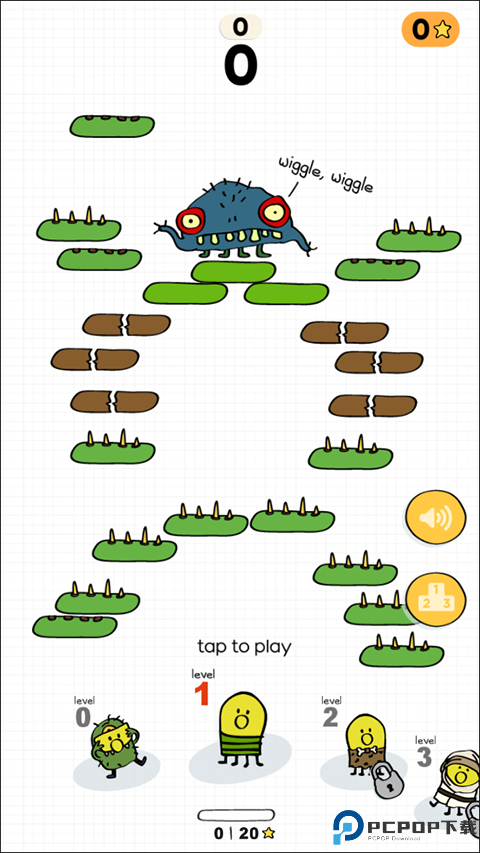 1、玩家将控制可爱的主角跳跃来冒险,控制的方式非常新颖,通过手机的重力感应操控