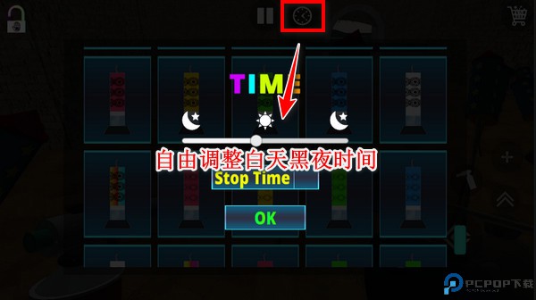 5、点击上方的时钟按钮,还可以自由调整地图的白天黑夜时间,最好的放烟花氛围当然是深夜啊!
