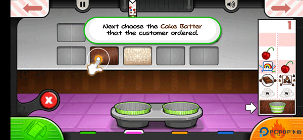 1、进入老爹蛋糕店游戏后,首先接收客户的订单,然后切换到面糊点开始打开纸杯蛋糕