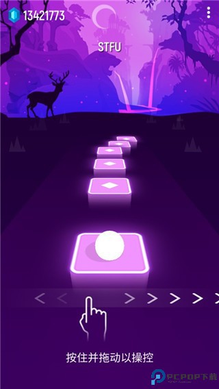 1、聆听音乐节拍,并使用音乐反射将球向左或向右拖动,以将球从瓦片引导至瓦片。总之,让一个球跳;