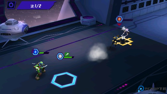 在莱昂纳多为了拯救他的忍者神龟兄弟和变种同伴而迎战克朗军队时帮助他。使用你最爱的忍者神龟角色,与莱昂纳多并肩来场五打五的对决。