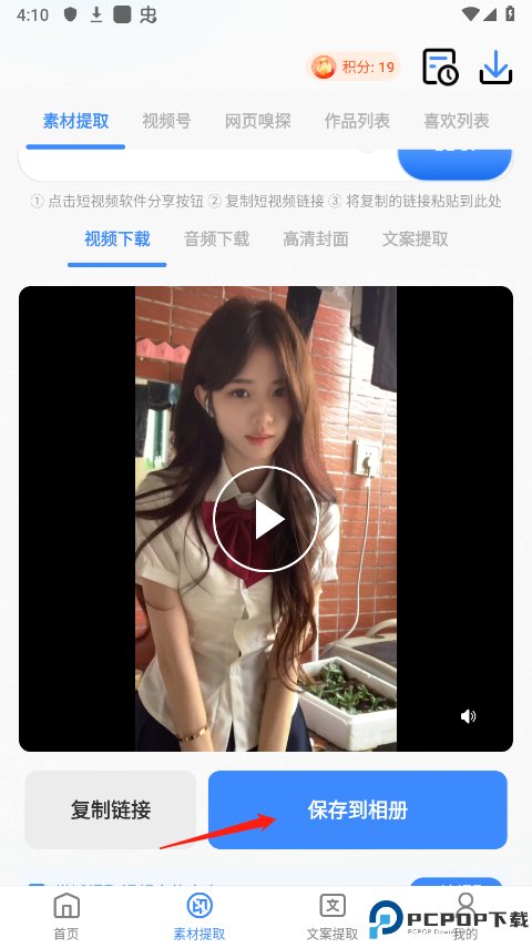 2、把你想要去水印的视频链接复制粘贴到下方输入框中点击提取。