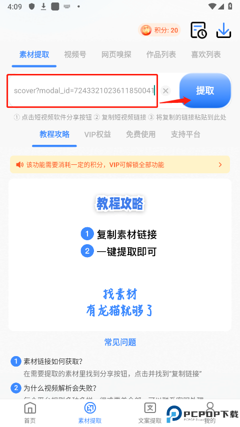 1、在本站下载安装该软件的最新官方正版,打开进入首页,点击素材提取中的立即提取。