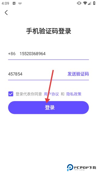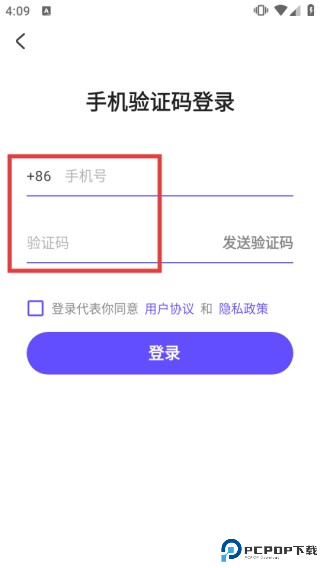 2、在手机验证码登录页,输入手机号码,获取并填入验证码,勾选协议。