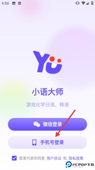 1、打开小语大师APP,选择【手机号登录】进入登录流程。